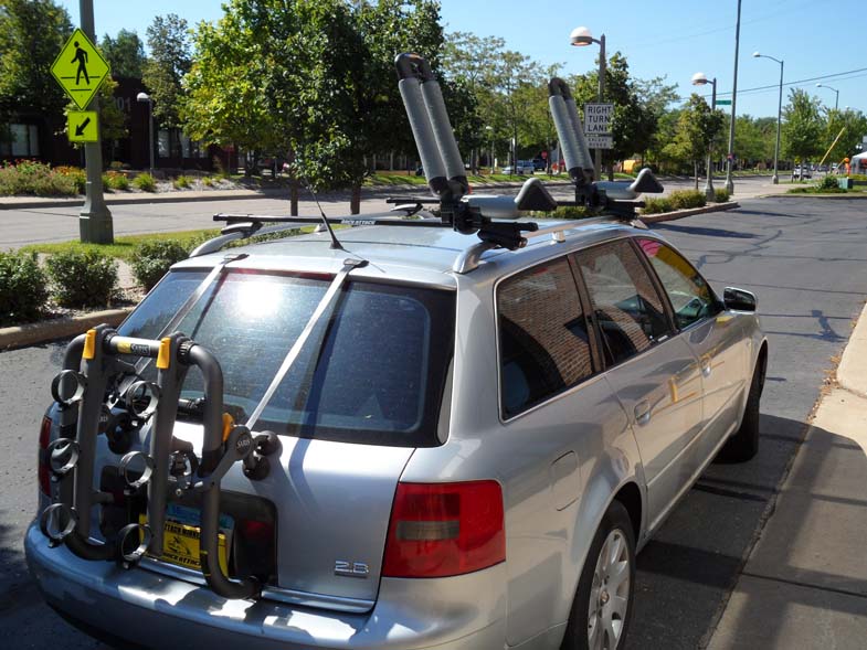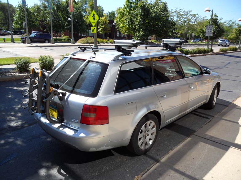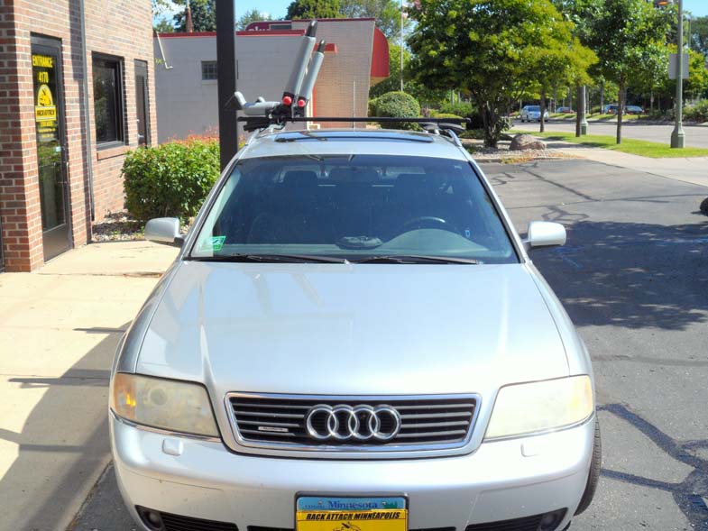 Today we're looking at an Audi A6 wagon that needs to be capable of carrying at least one kayak (for now!) The long, raised factory rails provided by Audi make for an excellent place to begin building the rack. The one bolt installation design makes installing and uninstalling the rack as easy as pulling back the cover, using the built in allen wrench to loosen the bolt, and removing the rack from your factory rails.