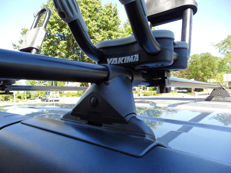 With these Yakima Hullraiser J-Cradles, the 'yak that gets hogtied to this roof isn't going nowhere, no how. Because of the even pressure of J-cradles, even in the hot sun, the boat will sit gently in the cradles without warping or bending.