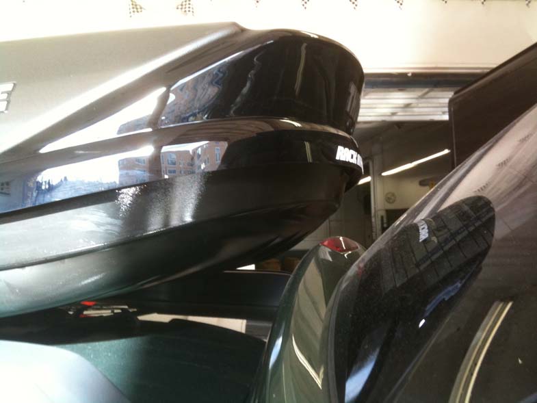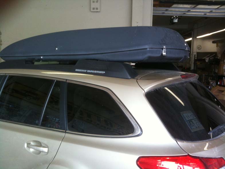 We've had many customers show up at our doorstep with their new 2010 Subaru Outback and their OLD luggage box (usually around 90" long) that does not clear the hatch/spoiler. ie: customer below that had a old Packasport 90 they wanted to use - and could not.