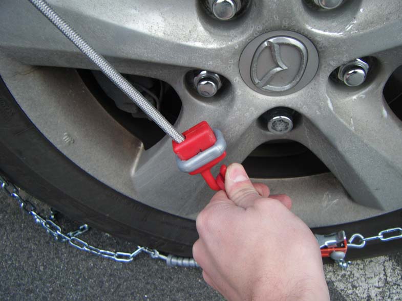 4.Hook the Red hook and chain on the front top part of the tire