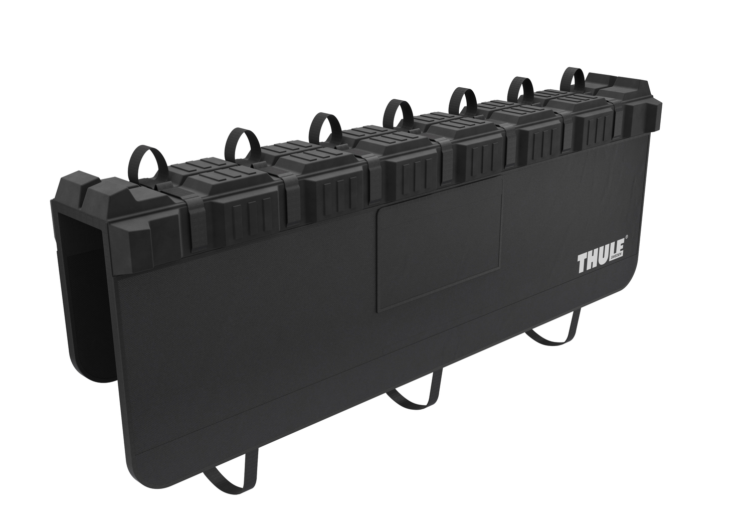 Thule Gate Mate 824. The ultimate shuttle pad for full-size truck owners. This 62-inch wide pad features high-density foam and a durable, weather-resistant vinyl exterior to withstand the toughest trail conditions. The integrated "Knock-Blocks" act as cradles to prevent bikes from sliding or making contact with one another, while the soft felt backing ensures your truck's finish remains pristine. With easy-access handle flaps and reinforced strap anchors, the Gate Mate 824 makes loading up for a group ride faster and safer than ever.