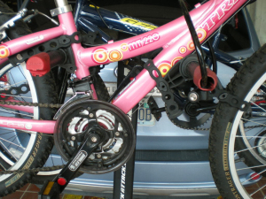 Keep the larger bikes closer to the vehicle and get creative with kids' and women's bikes