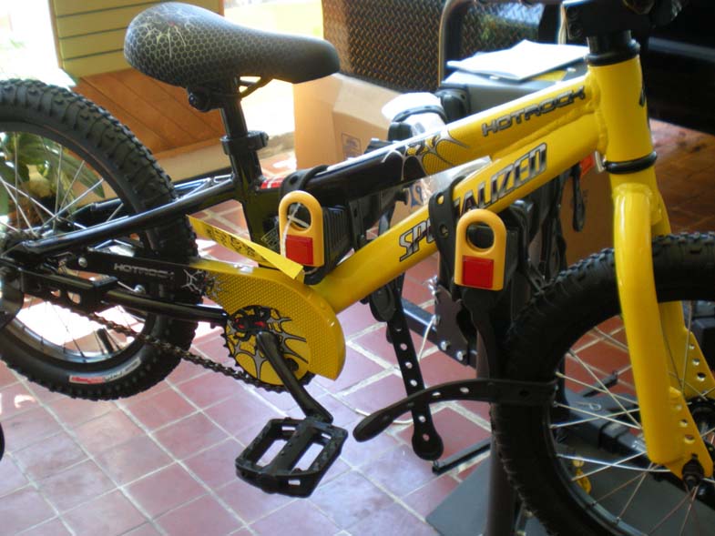 Here is another option for kids bikes--the Yakima Hold Up. While not perfect (kids' bikes have shorter wheelbases than an adult's), it sure is easy. The smaller of these bikes has 16" wheels.